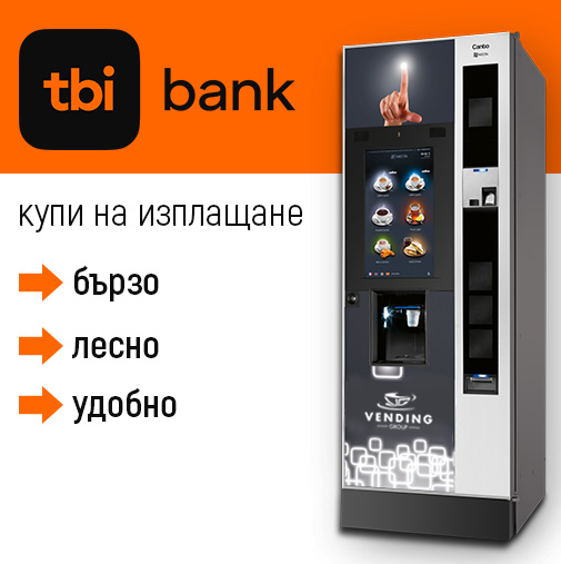 Нашите клиенти могат да закупят вендинг машини на изплащане чрез TBI bank. За всички вендинг машини, които предлагаме, имате тази удобна възможност!